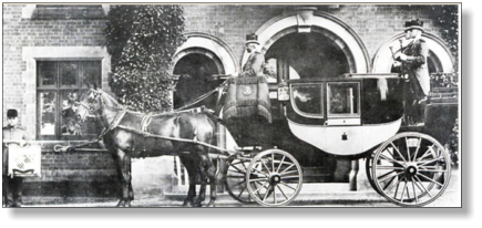 This picture of his ceremonial carriage shows his equipage in state livery, presumably used for official occasions as Justice of the Peace and for family social affairs. The trumpeter on the left has a banner with the family arms. It’s interesting that the carriage, was in an auction years later.