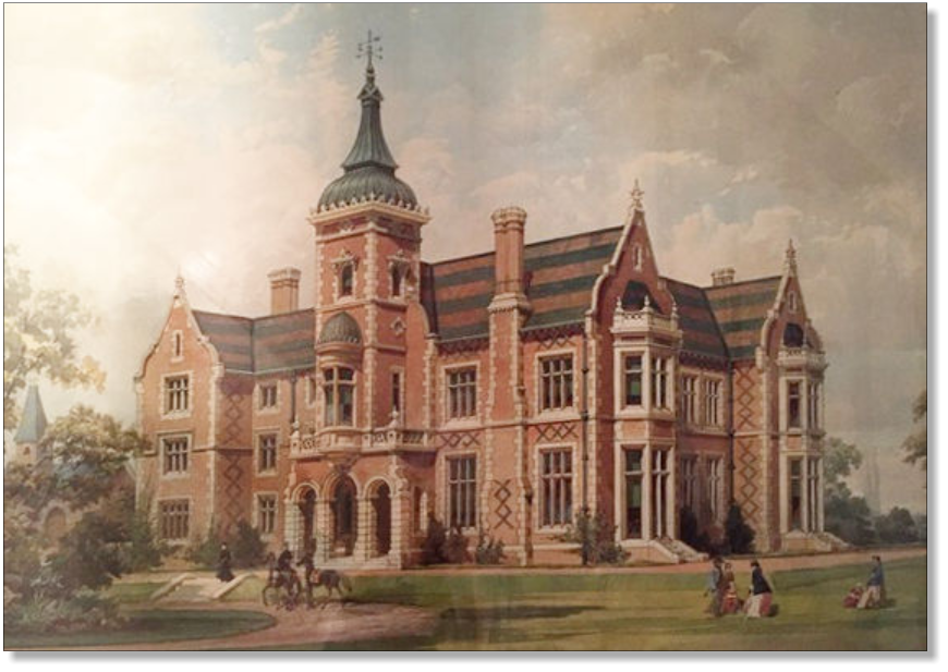 Robert Halstead Hargreaves was born 16 December 1860 when the family was resident in Leamington Priors, Warwickshire and christened on 6th February 1861 at All Saints Church, Leamington Priors. The family later returned to Staffordshire and moved into the newly built Knightley Grange. Robert was educated at Harrow and Magdalene College, Cambridge and joined the 2nd King’s Own Staffordshire Militia as second lieutenant in 1879, then in January 1888 was gazetted captain and hon. major. Like his father, he was also a J.P., and lived off his own income. Robert married Rose Harriett third daughter of Rev. C.H. Steward in the Parish Church of Ashchurch in Gloucestershire on Tuesday December 21 1886. For full details click here They had 3 daughters: Violet 1888, Nancy Steward 1890 and Ruth Gertrude 1893. All were baptised at St Lawrence Church, Gnosall. Robert travelled to South Africa and served in the Boer War. He was warmly welcomed on his return by train in Gnosall and Knightley where villagers towed his carriage most of the way home! He spoke to say that he had not been involved in any fighting, but had loyally met the call from his king to serve. For full details click here He was permitted to keep his rank of Major and hon. lieutenant-colonel when he resigned his commission in 1904. His appointment as a Deputy Lieutenant of Staffordshire and his tenure of the office of Sheriff in 1904, the year he resigned his military commission, demonstrated the high regard he enjoyed among the county’s gentry elite. From 1883 he served as a justice of the peace and was regularly on the Grand Jury at Assize time. Until 1889 the bench of magistrates at Quarter Sessions supervised the administration of public services in the county and Hargreaves was placed on several important bodies to represent the interests of the magistrates such as the Coton Hill Institution and the county Licensing Authority. In May 1909 Robert Halstead Hargreaves died while on a visit to London, aged 48; leaving his widow Rose Harriet and three unmarried daughters at Knightley Grange. His executors were Lewin Charles Cholmeley, his brother-in-law, and solicitor and Thomas Higgins Burne a neighbour at Loynton Hall, Norbury. Probate was granted for £29,935 Click here for his obituary Rose Harriett and two of her daughters continued to live at Knightley Grange, with Rose managing the estate and building up a herd of British Friesian dairy cattle. She and daughter Violet were also beekeepers. Rose became President of Gnosall and District Agricultural Society and of Gnosall W.I. Rose died 13 December 1942 and was buried at Knightley. Click here for her funeral notice This painting at Knightley Grange with The Wrekin in the background is of the three daughters of Robert and Rose Hargreaves. Violet Halstead never married and became a JP., a County Councillor for Forton, a social worker and President of Gnosall Nursing Association. In 1939 she was at Knightley Grange with her mother, and serving as a Special Constable. She remained at Knightley Grange until her death in 1964. In 1913 Nancy Steward married Gerald Poynton Mander, of Wolverhampton. They had 3 children born in Wolverhampton. She died 20 November 1960. In 1923 Ruth Gertrude married Captain William Ralph Wolseley. He had been decorated in WWI and son of Sir Charles Wolseley of Wolseley Hall in Colwich. He and Ruth lived at Knightley Grange, and in 1939 he was there as a member of the ARP while Ruth was in the Women’s Land Army and the WVS. They had 2 children both baptised locally. Ruth died 7 December 1962 at Knightley Grange. In 1966 some of the more valuable contents of Knightley Grange were sold by auction. Click here for details The property was sold in 1967.