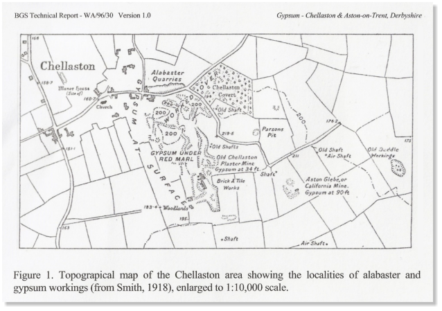 Geological and Technical notes.Introduction Henry Newton started his business in Gnosall in 1855. The earliest newspaper advertisement placed by him found so far is dated 1863. It gives an indication of variety of the building products that he was manufacturing at that time and is shown below:The following account gives a “base level” explanation of how the minerals and rocks that are used as raw materials were mined, transported and then processed in plaster and cement mills to manufacture those products.However, the account begins with a consideration of the local geology around Chellaston, near Derby (where the Newton family originated), and the Fauld area, near Tutbury, in East Staffordshire. These two areas are “famous” for their deposits of alabaster, as well as gypsum and anhydrite, the raw materials needed to make plasters and some types of cement. The manufacture of other types of cements that are derived from limestones such as Portland Cement are also covered.Geological SettingSome 180 - 190 million years or so ago, during the late Triassic period, Staffordshire was located at similar latitudes to the Sahara Desert. The climate was hot and arid, and the landscape was one of low hills, with sedimentary basins, wide flood plains and large shallow onshore ephemeral lakes, termed “Playa Lakes”.The basins were fed by rivers arising in once mountainous areas, to the south in France. The rivers transported clays, muds and silts (occasionally sands) as suspended sediments and deposited them into the basins. These sediments were lithified millions of years ago and became the thick sequences of reddish-brown coloured mudstones and shales found all across the Midlands, including Gnosall, where they are partly exposed in Cowley Cutting. The sequence is known as the Mercia Mudstone Group (MMG).In addition to the suspended sediment loads, rivers also carry minerals in solution, (dissolved out of the rocks over which they are flowing). Where the rivers drained into playa lakes (as opposed to the sea) because of the hot climatic conditions these lakes were susceptible to water loss by evaporation, and the consequent increase in concentration of dissolved minerals. At the saturation point, the minerals start come out of solution as precipitates and then sink to the bottom of the lake. Sometimes the playa lakes will dry up completely, creating “mineral flats” until river flows recover, and the lakes form again. These river and climatic conditions prevailed over millions of years and the process was repeated many times. Not surprisingly mineral deposits such as: Gypsum, Anhydrite and Alabaster formed in this way are collectively termed “Evaporites”. Within Staffordshire the most important deposits of Gypsum, Anhydrite and Alabaster are found around Tutbury and near a hamlet called Fauld in the Parish of Hanbury (there are others near Stowe by Chartley). Extensive deposits were also found in Chellaston, where Henry Newton was born, some 5 miles SE of Derby City Centre. The British Geological Survey now refer to all of the deposits (regardless of actual geographical location) as The Tutbury Gypsum in their “Lexicon of Named Rock Units”. The British Geological Survey Maps: Sheet 140 “Burton Upon Trent” covers Tutbury and Fauld areas and Sheet 141 “Loughborough” covers Chellaston. Both maps, together with vertical sections, cross-sections etc are available to view via the BGS Website’s. Map Portal.Evaporitic Minerals and Rocks GypsumGypsum is a naturally occurring, whitish, non-metallic mineral composed essentially of Calcium Sulphate. It also contains two molecules of water incorporated within its molecular structure (known as the Water of Crystallisation). The chemical formula is: CaSO4. 2H2O. In nature it can found in both crystalline and in massive forms. Gypsum is very soft and is easily scratched. It is designated as the Index Mineral Hardness 2 on Moh’s Scale of Hardness (where Talc = 1 and Diamond = 10). AnhydriteAnhydrite is a naturally occurring mineral very often found associated with gypsum. Like gypsum it is essentially Calcium Sulphate, but, as its name suggests, does not have any water of crystallisation. Its chemical formula is CaSO4. It tends to be greyish in colour but is harder than gypsum, registering 3 to 3.5 on the Moh’s Scale. AlabasterAlabaster is not a mineral per se, it is a rock composed a range of constituent minerals in varying amounts. The minerals include Gypsum, Anhydrite, Calcite (Calcium Carbonate, CaCO3) and traces of other minerals. It has a characteristic mottled and/or colour-banded appearance. It is a soft rock and can be carved, sculpted, turned on lathes and polished. It has been used for centuries to make ornate architectural features and “objets d’art”.Although gypsum, anhydrite and alabaster are classified as different substances, in evaporitic mineral deposits they are often found blended together in complex intermingled irregular bodies rather than individual distinct beds of pure gypsum or alabaster. Tutbury GypsumIn 1906 Thomas Trafford Wynne, an experienced Mining Engineer (Henry Newton’s son in law) presented a paper to the Institution of Mining Engineers titled “Gypsum in the Dove Valley”, where he described the nature of the Tutbury Gypsum deposits. Extracts as follows:The gypsum is found cropping out on the hillside and has proved to be a continuous though irregular deposit, though how far back into the hill has not yet been ascertained... All classes of stone are mined: large alabaster blocks, either pure white or veined or coloured; and from the best white gypsum from which the highest grades of plaster are made, through the various grades down to stone so mixed with marl as to be valueless.Anhydrite, or as it is called locally “hardstone”, is met with in varying quantities…There seems to be no dividing line or clear cleavage between the gypsum and the anhydrite. The hardstone is often inti