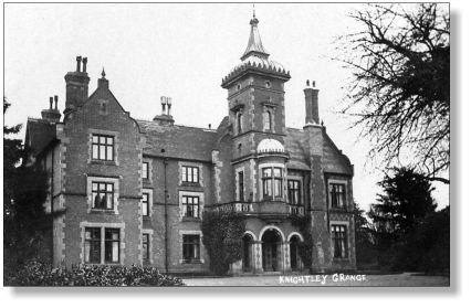 The site of Knightley Grange was owned on the Tithe survey in the late 1830s by the Earl of Lichfield. In August 1856 an estate of 2000 acres was advertised for sale by auction in September of that year (see newspaper article). It was described as “a highly valuable freehold estate situate in the townships of Norbury, Knightley, Plardiwick and Gnosall”. The sale particulars (Stafford Record Office D615/ES/4/12) advertised several farms together in one lot. The land sold to Mr Hargreaves amounted to about 580 acres. This is calculated from the land owned by his son’s widow Rose Hargreaves on the 1910 Finance Act (see plan), and which confirms the 1856 Sales particulars held at Stafford Record Office, so it appears that the original 2000 acres sale was divided and it is not clear whether his purchase was concluded at the auction or at a later date. The site for the building of Knightley Grange property was on that of Cob Hall Farm (plot 417 on Tithe Map). A relevant section of the 1838 Tithe map and later OS map from 1880 have been merged in the comparison (shown by the link on the right). Note the the orientation of the Tithe map is not North-South as indicated by the angle of the 1838 text. As can be seen in the comparison the adjacent roadway was changed and a sweeping driveway laid to the west side with a service access to the east. Cob Hall Farm comprised 105a, 0r, 7p perches of land in 1856 and was in the tenancy of John Skellorn. Skellorn’s tenancy of Cob Hall Farm was recorded in the Gnosall rate books maintained by parish overseers of the poor. Details show that in April 1860 the owner was Earl of Lichfield and a few months later in August, the owner was Hargreaves. However, the land area had reduced to 97a, 2r, 4p on both records. Maybe Hargreaves had made an arrangement to occupy some of the estate earlier or until Skellorn’s tenancy had expired thus allowing building work to commence. In January 1861, the Gnosall rate books indicate that Hargreaves is the occupier as well as the owner. There are no dates when the Grange was built but what may help is to track the whereabouts at that time of Robert Hargreaves. He was residing in the late 1840s at Johnson Hall just South of Eccleshall and it is from that address it is assumed he negotiated the purchase of the estate from Earl of Lichfield. Newspaper articles (shown by the link on the right) from 1859 show that he was at the Hall in July. Johnson Hall was sold in August and there was a 3 day sale of contents in September “the property of Robert Hargreaves Esq”. Some 12 months later on 16 December 1860 his son Robert Halstead Hargreaves was born at Leamington Priors, Warwickshire. The newspaper announcement refers the father as Captain Hargreaves, Norbury Manor. So it appears that the family might have moved to Norbury Manor which was included in the estate that Hargreaves purchased. However, The 36, Lansdown Place, Leamington Priors address is a mystery. Robert Halsted was christened at Leamington Priors in February 1861 and the whole family was there on the 1861 census. In June 1861 Robert was back in the locality attending a dinner at Walton Grove, Eccleshall of the “Eccleshall Rifle Volunteers” where the chairman in his speech said: “it gave him great pleasure to see Major Hargreave’s face once more amongst them, and he hoped that ere long he would settle in his new home as one of the resident landed proprietors of the county”. The earliest evidence of occupancy was a newspaper report dated 25 January 1862 of a ball. A list of patrons included “Major Hargreave, Knightley Grange, Eccleshall”. He built his imposing country house “in the Tudor style”, Knightley Grange. The original house had tall Tudor chimneys, a tower, mullioned windows and projecting bay windows topped by balconies. The property remained in the Hargreaves family for over 100 years until it was sold with most of the estate in 1967. Some properties were retained by the family. Knightley Grange was never lived in again after that date. 1967 - It was bought by a farmer Brian J Dale from Ludlow who demolished the tower as it was unsafe and started work doing structural alterations, but these were never completed. In 1992 Knightley Grange and the majority of the estate was sold to Lichfield Estates who didn’t do anything to it. Then in 2007 it was bought by a large property investment company Granger PLC. In 2009 they sold it to the present owner. At that time, Country Life magazine wrote: “Uninhabited now for a number of years, Knightley Grange is in a pretty rundown state, although wind- and weathertight, and according to selling agent Tony Morris-Eyton, wired and plumbed to ‘first fix stage’. Shrewsbury-based architect Graham Moss has produced an impressive set of drawings indicating how the house and its courtyard of ancillary buildings could look once restored. It makes an appealing picture, at an estimated construction cost of £1m-plus.” The building was demolished in 2019.