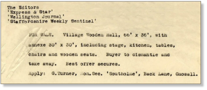 Acknowledgements: Many thanks to the Gnosall Memorial Institute (Hall) committee for their help and allowing the scanning and sharing of historical documents and to the Staffordshire Advertiser for permission to include newspaper extracts.